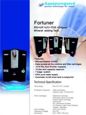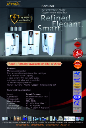 Aqua Fortuner Ro Water Purifiers [RO+UF+SS Krish UV+Alkline]