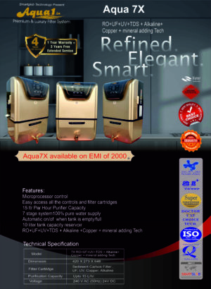 aqua 7X RO+UF+UV+TDS+Alkaline Copper+Mineral adding Tech